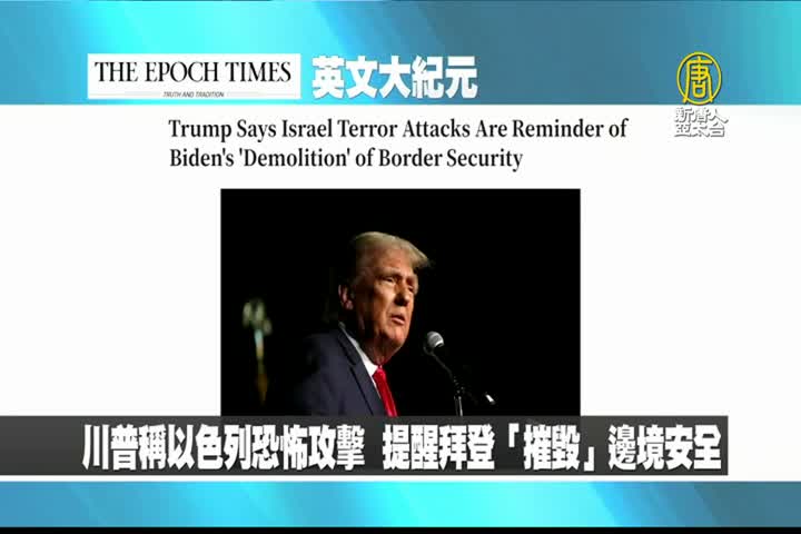 【新唐人亞太台 2023 年 10 月 13 日訊】首先來看到美國大紀元英文版報導:美國前總統川普週三表示,哈瑪斯對以色列的恐攻提醒了人們,總統拜登「摧毀」美國邊境安全的政策。