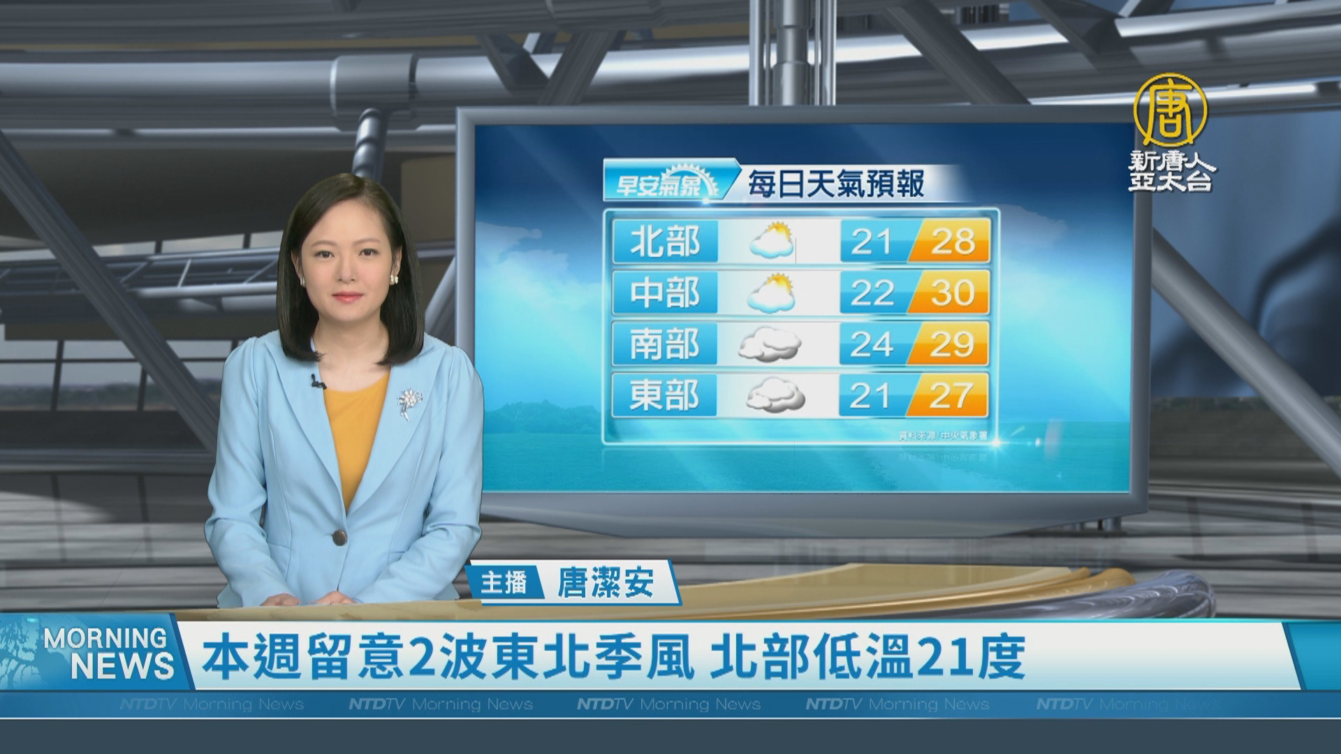 【新唐人亞太台 2023 年 10 月 16 日訊】歡迎您收看10月16日的早安新唐人,我是唐潔安,先來帶您關心天氣。未來一周主要有2波東北季風影響,北部及東半部低溫約攝氏21至24度。中南部日夜溫差較大,提醒早出晚歸的觀眾朋友,留意溫度變化。帶您一起來看到國際媒體重要訊息。