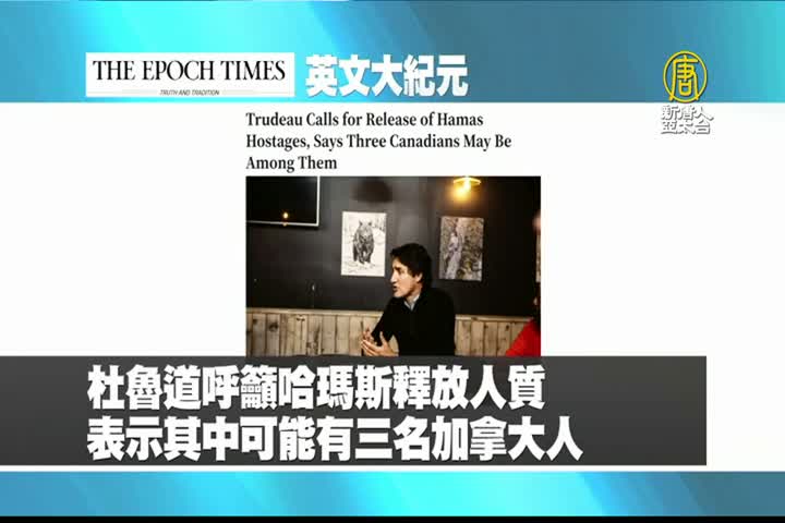 【新唐人亞太台 2023 年 10 月 17 日訊】首先來看到美國大紀元英文版報導:加拿大總理杜魯道呼籲哈馬斯釋放人質,表示其中可能有三名加拿大人。