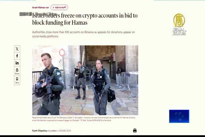 【新唐人亞太台 2023 年 10 月 17 日訊】巴勒斯坦激進組織「哈瑪斯」對以色列發動突擊,外界關切,遭國際組織經濟制裁的哈瑪斯,究竟是如何獲得龐大資金,有外媒指出,加密貨幣是重要資金渠道。英國金融時報報導,自哈瑪斯襲擊以色列以來,以色列執法當局已下令,查封上百個加密幣帳戶,沒收價值數百萬美元的加密幣,要切斷哈瑪斯在加密幣市場的金流。