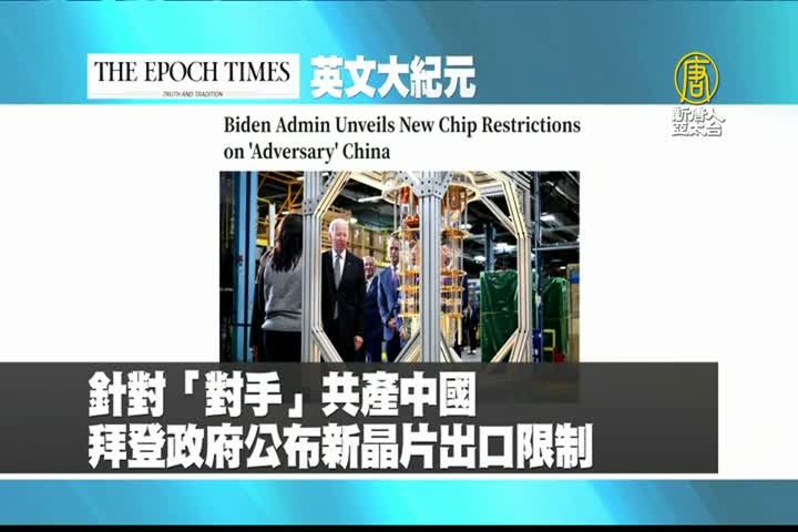 【新唐人亞太台 2023 年 10 月 18 日訊】首先來看到美國大紀元英文版報導:針對「對手」共產中國,拜登政府公布新晶片出口限制。