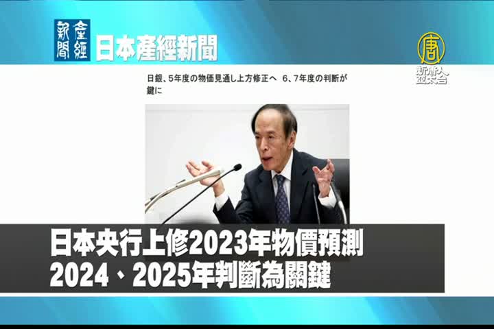 【新唐人亞太台 2023 年 10 月 18 日訊】來看到日本產經新聞報導:日本央行上修2023年物價預測,對明後年的景氣判斷將影響未來貨幣政策。