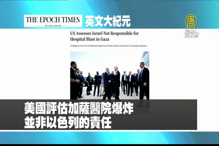 【新唐人亞太台 2023 年 10 月 19 日訊】首先來看到美國大紀元英文版報導:美國總統拜登18日表示,美國國防部收集的數據,傾向以色列對17日加薩醫院的致命爆炸,不負有責任。