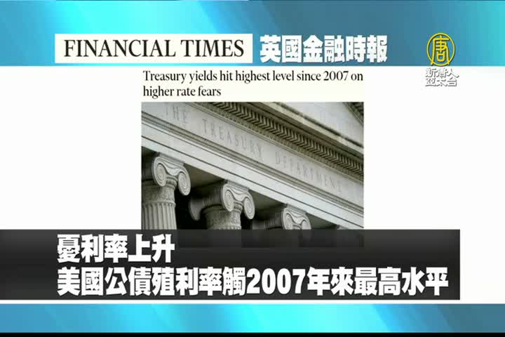 【新唐人亞太台 2023 年 10 月 19 日訊】接著是英國金融時報的報導:美國國債殖利率升至16年來最高水平,週三全球股市下跌。