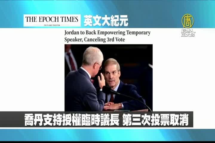 【新唐人亞太台 2023 年 10 月 20 日訊】首先來看到美國大紀元英文版報導:眾院共和黨人提動議,授權臨時議長在1月前處理眾院事務,候選人喬丹支持並取消第三次投票。