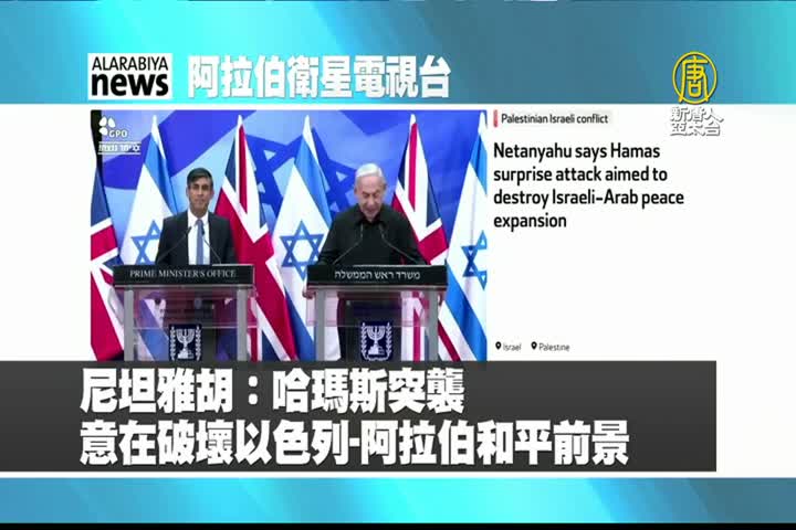 【新唐人亞太台 2023 年 10 月 20 日訊】來看到阿拉伯衛星電視台報導:以色列總理尼坦雅胡表示,哈瑪斯突襲意在破壞以色列與阿拉伯世界的和平前景。
