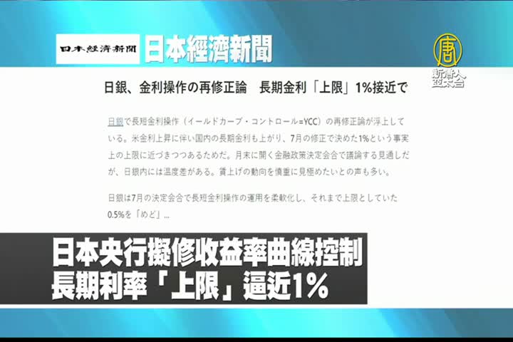 【新唐人亞太台 2023 年 10 月 23 日訊】來看到日本經濟新聞報導:日本央行考慮調整收益率曲線控制,允許長期利率接近1%。