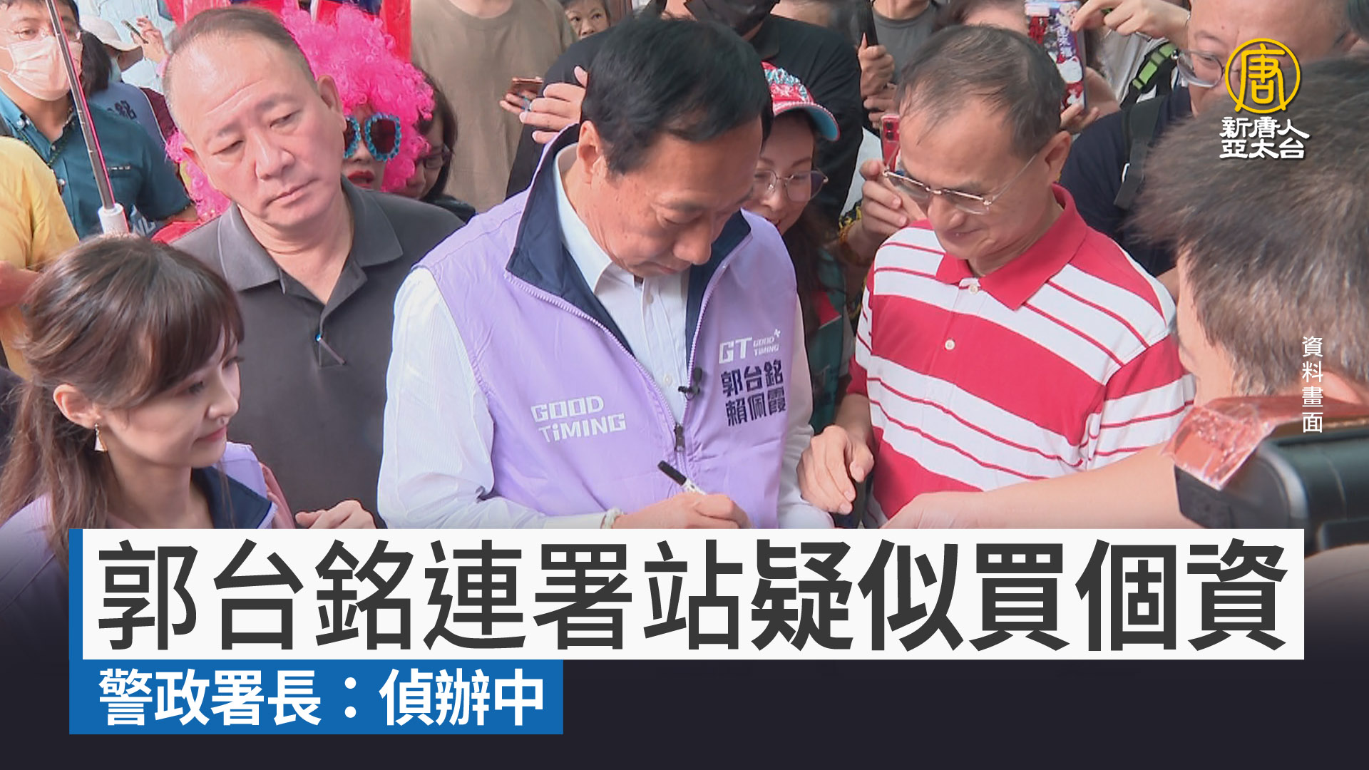 【新唐人亞太台 2023 年 10 月 23 日訊】鴻海創辦人郭台銘,近期衝刺參選總統連署書,現在卻傳出有多起花錢買個資、獎金衝連署等案件,檢警已經訊問上百位連署民眾,收押一名主嫌,另外有6名被告交保。警政署長黃明昭今天(10/23)在立法院備詢時表示,類似的查賄案件各縣市警方都有蒐報,案件正在偵辦中。