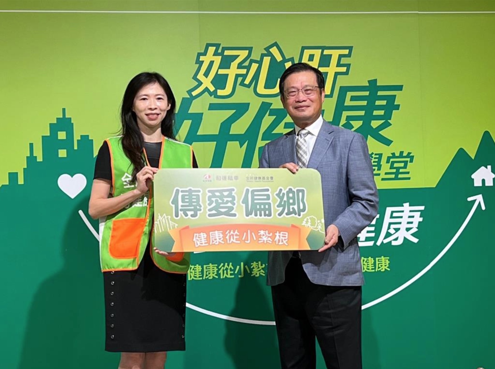 全民健康基金會執行長粘曉菁(左)、和運租車董事長劉源森合影。(全民健康基金會提供)