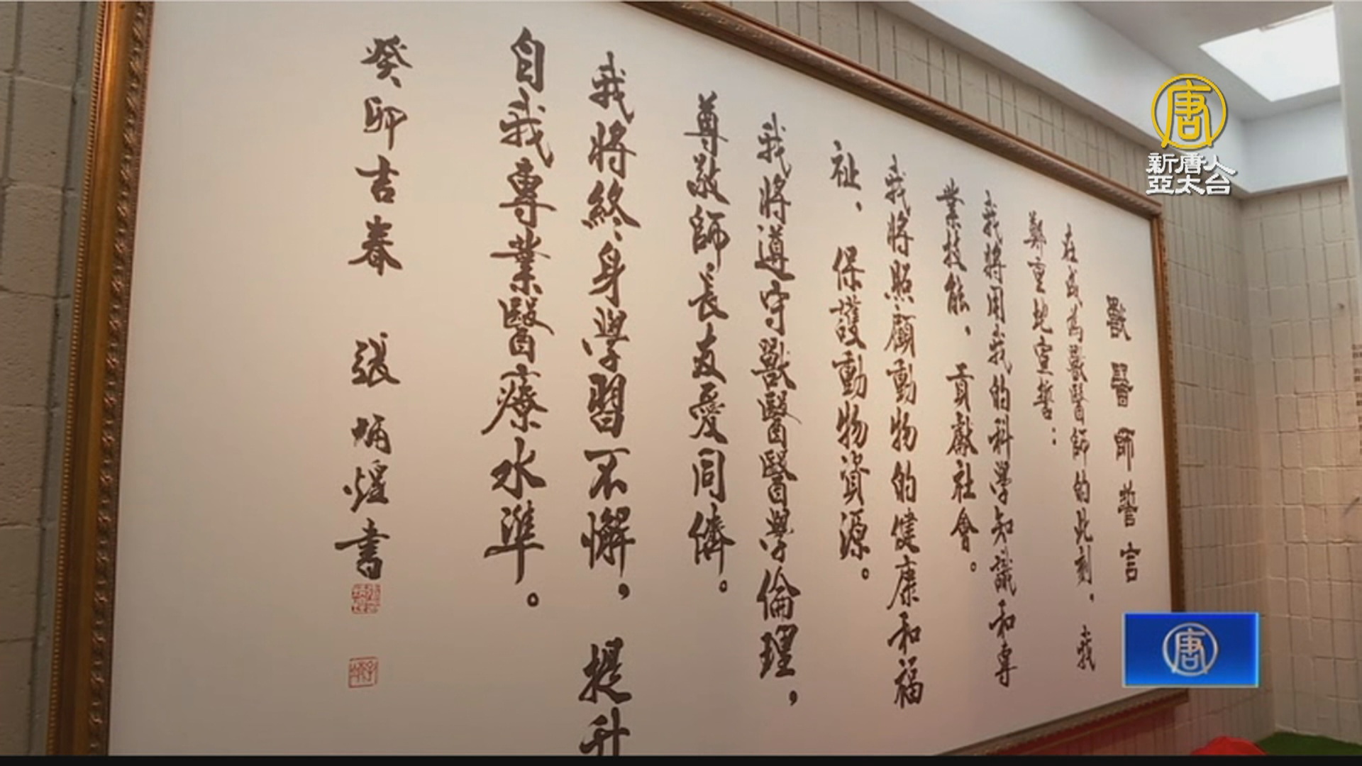 【新唐人亞太台 2023 年 10 月 26 日訊】歡迎回來。為了讓台灣獸醫學系的準獸醫師在授袍典禮,有獸醫師誓言可供依循,屏科大獸醫學院自製了一面「獸醫師誓言牆」,週三舉行落成揭牌典禮,希望能提醒未來的獸醫師,勿忘初心,並兼具社會責任。