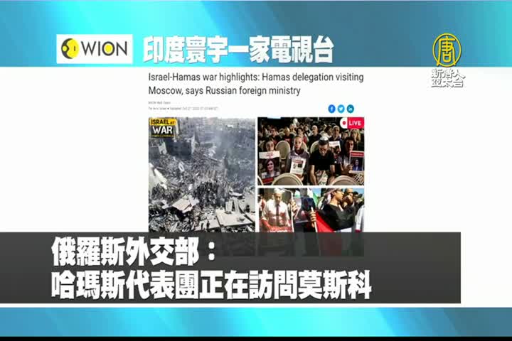 【新唐人亞太台 2023 年 10 月 27 日訊】最後是印度寰宇一家電視台報導:俄羅斯外交部表示,哈瑪斯代表團正在訪問莫斯科。