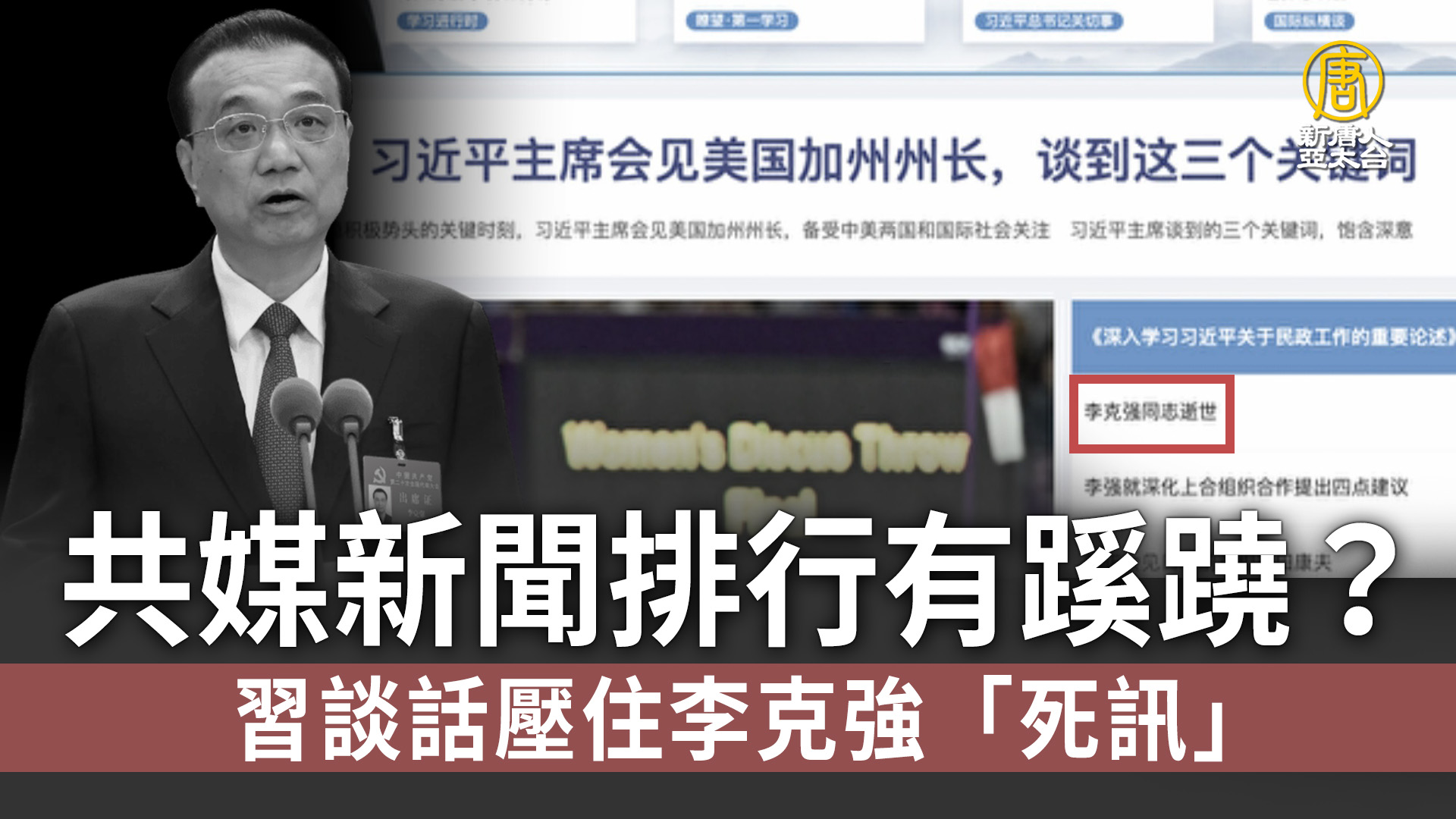 共媒新聞排行有蹊蹺?習談話壓住李克強「死訊」
