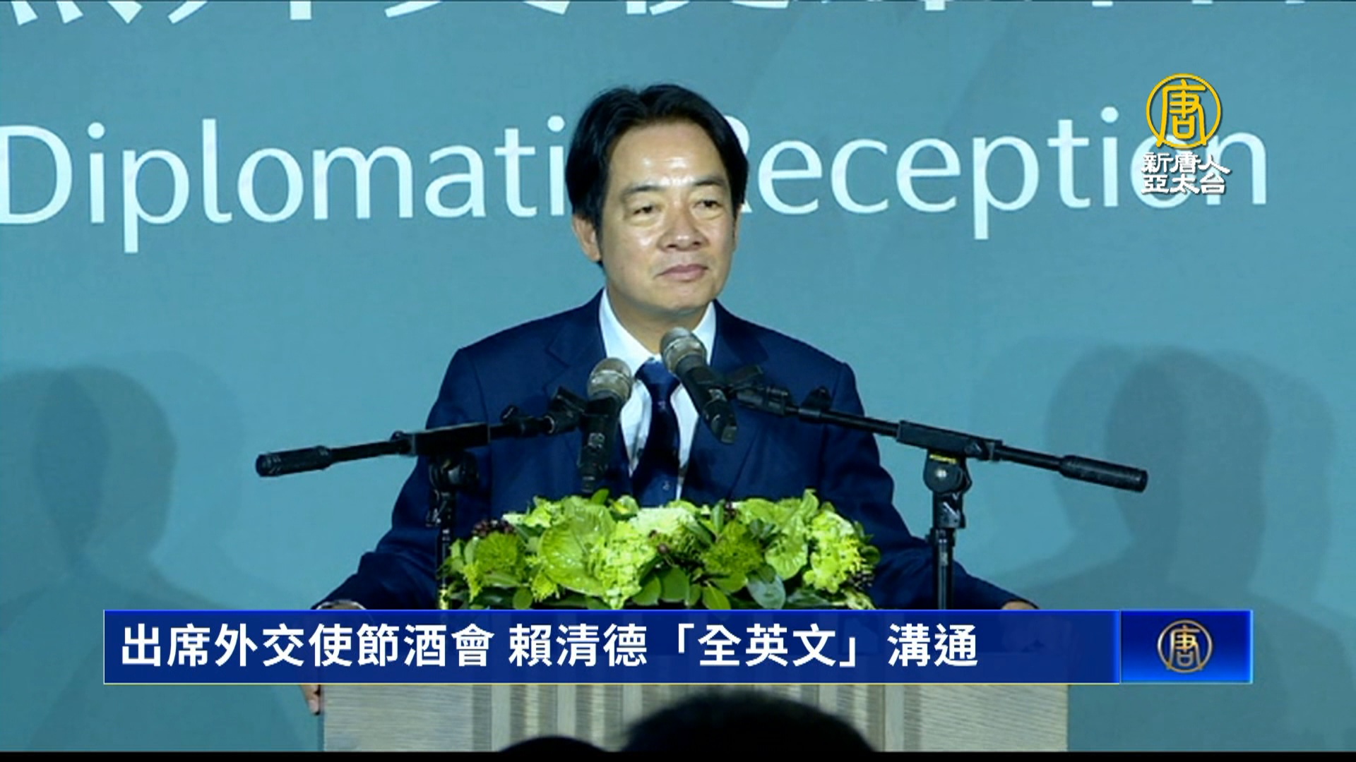【新唐人亞太台 2023 年 10 月 27 日訊】民進黨總統參選人賴清德,今天晚上出席外交使節酒會,罕見用全英文的方式,直接向來自50多國的駐台使節溝通。強調他會堅守總統蔡英文所提出的「四個堅持」同時,也會推動「和平四大支柱」,在對等尊嚴下展開兩岸對話。