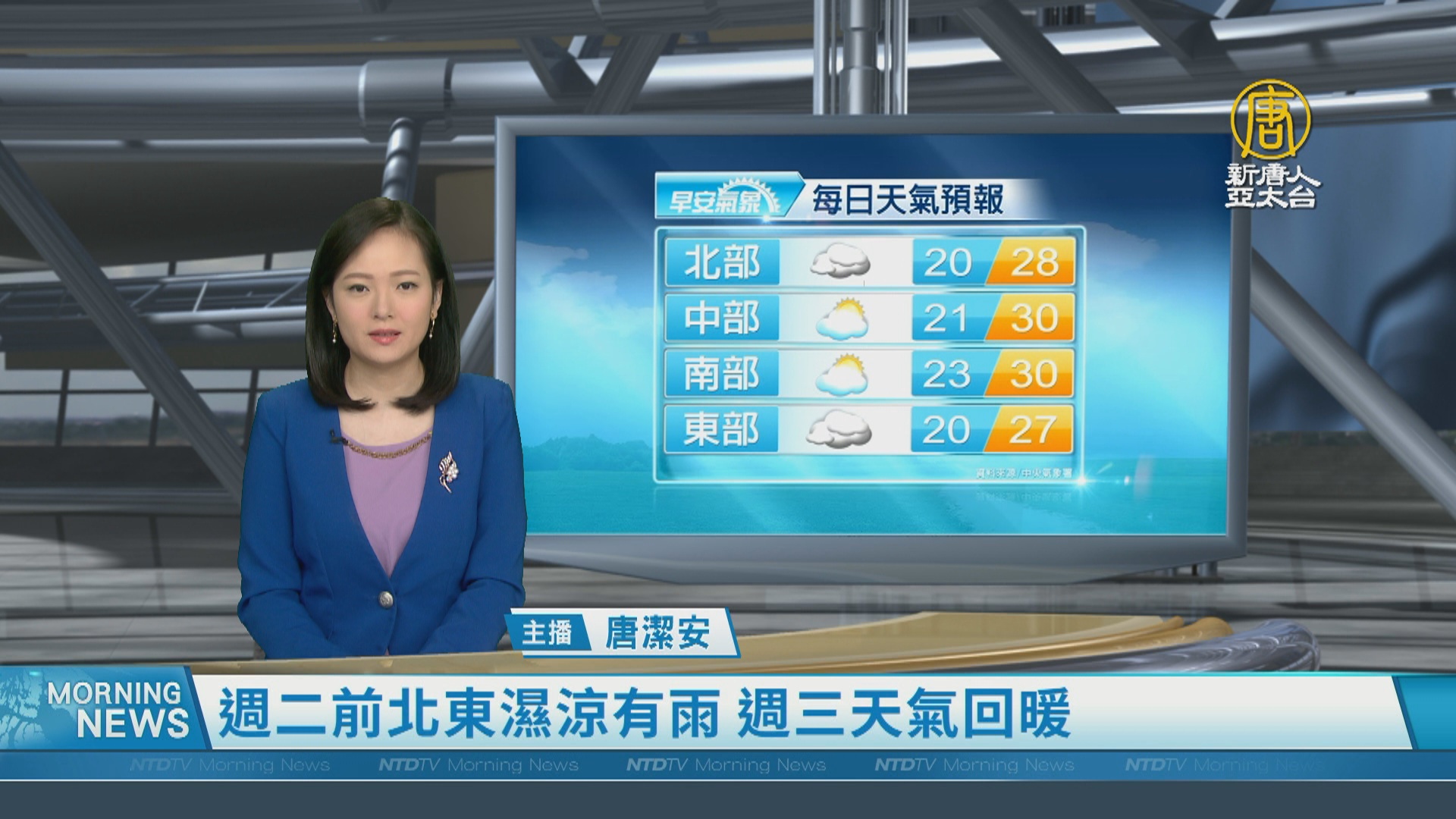 【新唐人亞太台 2023 年 10 月 30 日訊】歡迎您收看10月30日的早安新唐人,我是唐潔安,先來帶您關心天氣。迎接新的一週,受到東北季風影響,今天、明天,桃園以北、東半部將是濕涼有雨;星期三之後,東北季風減弱,天氣回暖,各地高溫有機會超過30度,降雨緩和,不過,日夜溫差可能超過10度。提醒觀眾留意。帶您一起來看到國際媒體重要訊息。