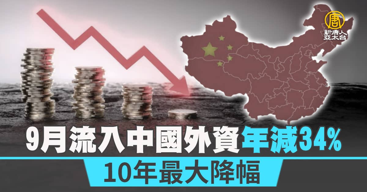9月流入中國外資年減34% 10年最大降幅