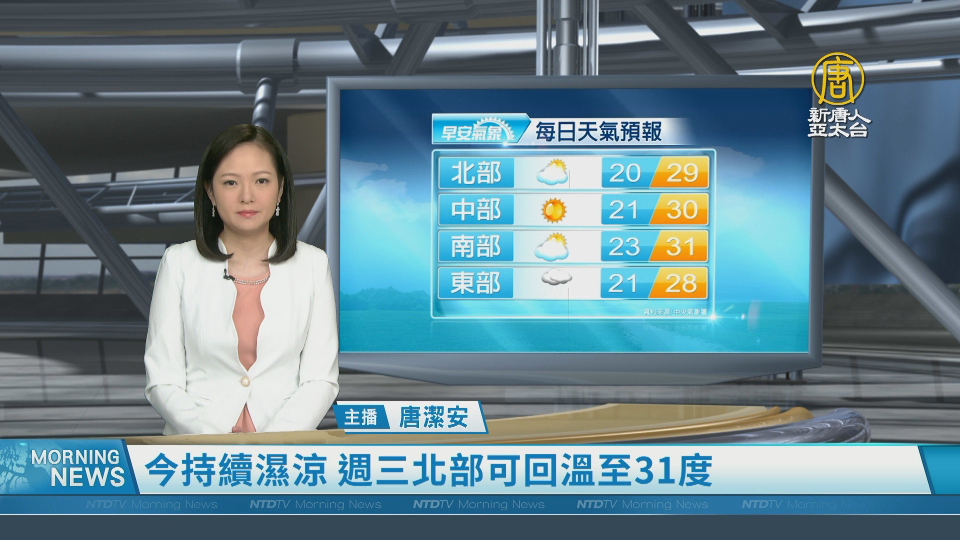 【新唐人亞太台 2023 年 10 月 31 日訊】歡迎您收看10月31日的早安新唐人,我是唐潔安,先來帶您關心天氣。受到東北季風影響,今天(31日)桃園以北、宜花仍是濕涼的天氣,早晚各地低溫20度,北東白天較涼約24度。不過,星期三(1日)開始,全台天氣都會回溫,直到下週一,新一波東北季風增強前,北部可回溫至31度。帶您一起來看到國際媒體重要訊息。