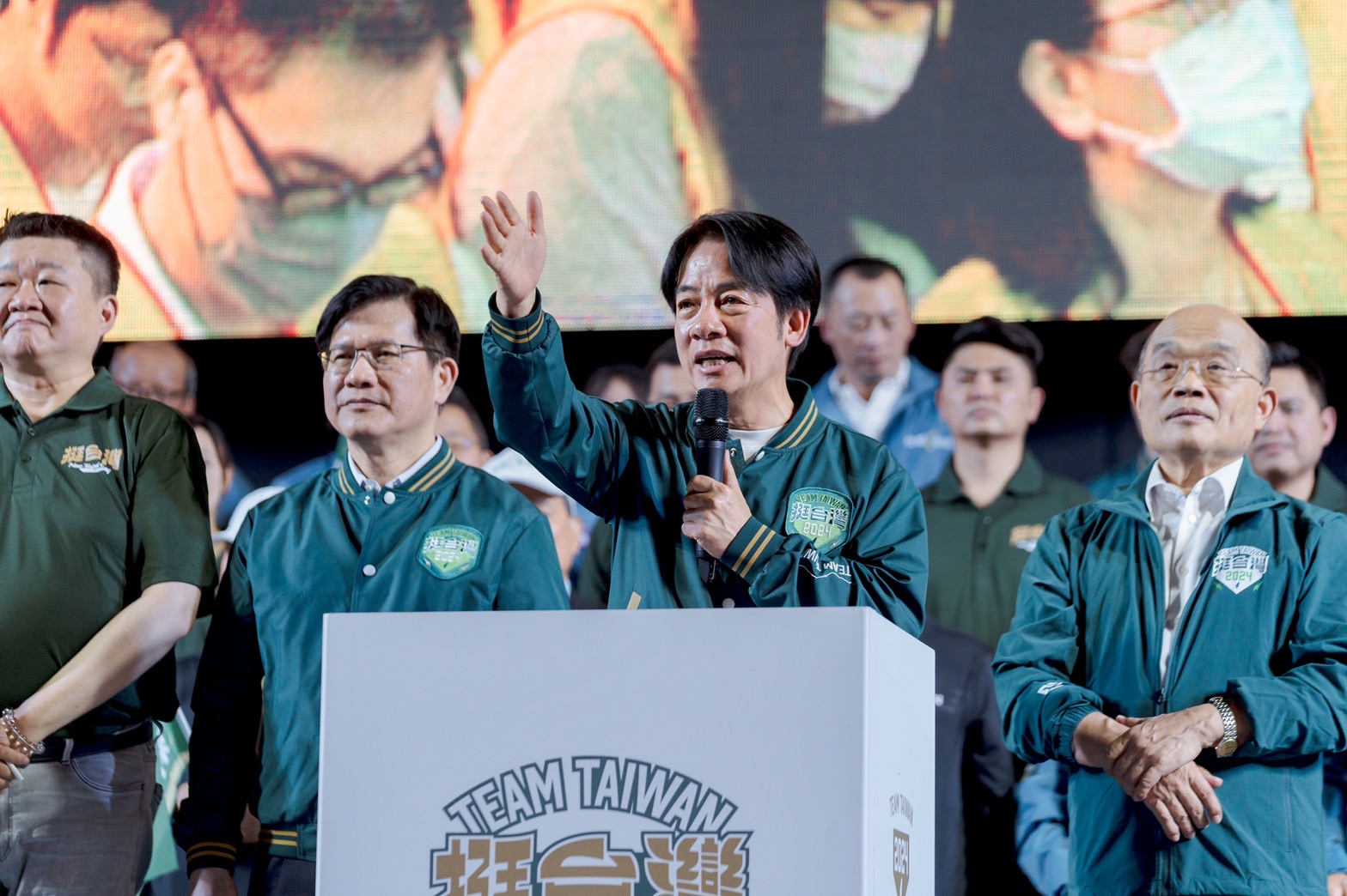 賴清德新北競選總部成立,總統蔡英文、前行政院長蘇貞昌同台力挺。蘇貞昌拿出招牌撞球桿,細數政府政績。蔡英文回應對手藍白合權力分配。