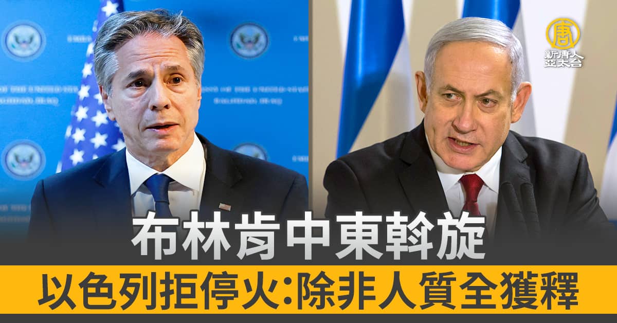 以色列總理內塔尼亞胡週五在首都特拉維夫與布林肯會面時,拒絕了美國的暫時停火提議,堅稱除非釋放所有人質,否則絕不停火。