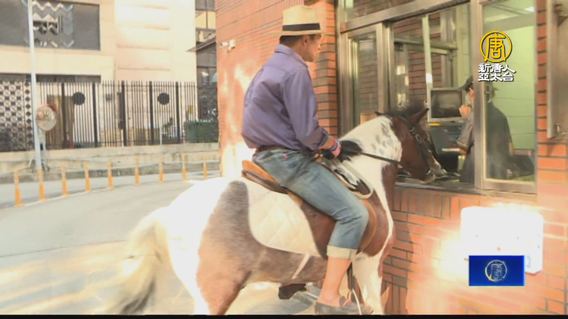 連鎖速食店的點餐車道上,居然有人騎著馬,連店員都驚奇。