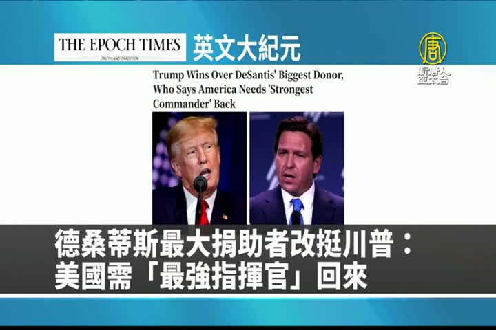 【新唐人亞太台 2023 年 11 月 09 日訊】首先來看到美國大紀元英文版報導:佛州州長德桑蒂斯2024競選最大捐助者、房地產大亨畢格羅表示,改支持前總統川普。