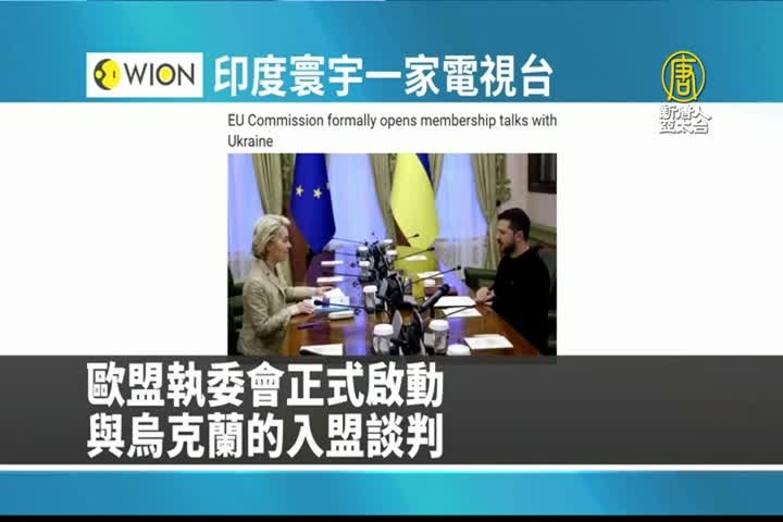 【新唐人亞太台 2023 年 11 月 09 日訊】最後是印度寰宇一家電視台報導:歐盟執委會正式啟動與烏克蘭的入盟談判。