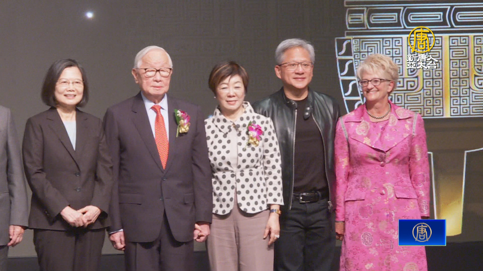 【新唐人亞太台 2023 年 11 月 09 日訊】李國鼎科技發展基金會,第一屆「李國鼎獎」,今(9)日下午頒獎,台積電創辦人張忠謀獲獎,總統蔡英文也出席,多位產業界大老皆出席致意。輝達執行長黃仁勳,更是意外驚喜現身,他推崇張忠謀是台灣科技教父,更說沒有台積電就不會有輝達。