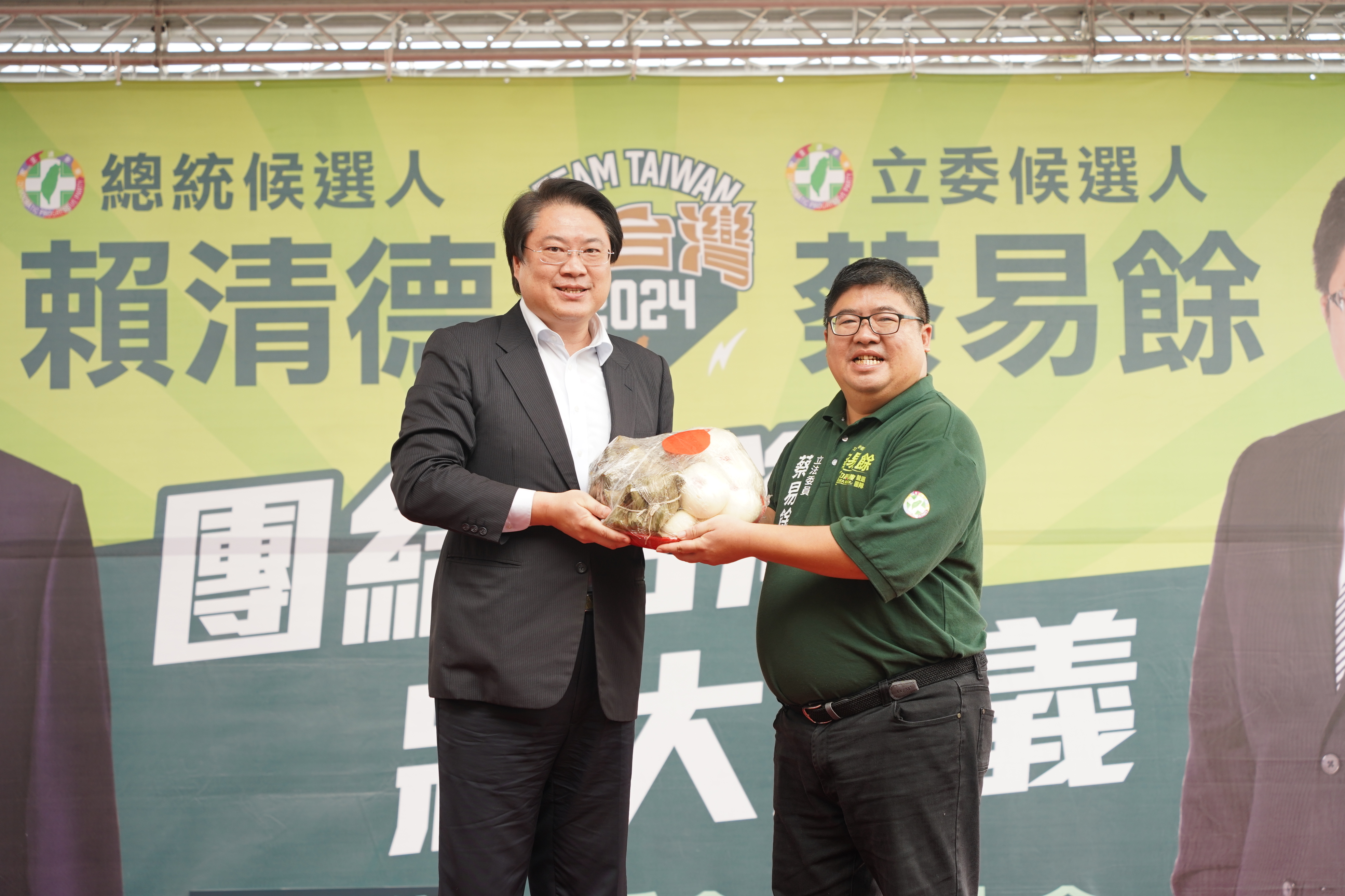 【新唐人亞太台 2023 年 11 月 12 日訊】民進黨嘉義縣海區立委參選人蔡易餘12日成立總統、立委六腳鄉聯合後援會,蔡易餘提出增設農業科技園區、提高公糧收購價格等政見,同時爭取在蒜頭糖廠倉庫推動火車博物館,內政部長林右昌站台時除說內政部會全力支持蔡易餘推動的建設,也拜託大家成為蔡易餘、賴清德的後盾,衝上7成選票。