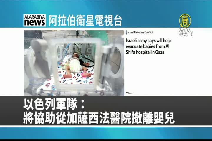 【新唐人亞太台 2023 年 11 月 13 日訊】來看到阿拉伯衛星電視台報導:以色列軍隊表示,將協助從加薩西法醫院撤離嬰兒。