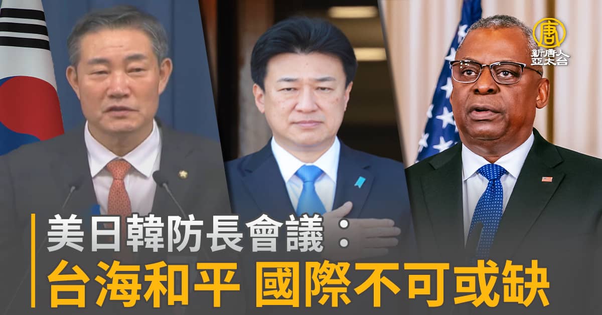 【新唐人亞太台 2023 年 11 月 13 日訊】早安新唐人,國際最新消息先來關注,台海情勢。美國、日本、南韓三國,舉行國防部長會議,五角大廈聲明指出,美日韓三國防長強調台灣海峽和平穩定的重要性,為國際社會的安全和繁榮所不可或缺。另外,三國防長也同意,將在12月啟動對北韓飛彈預警數據的即時共享計畫。