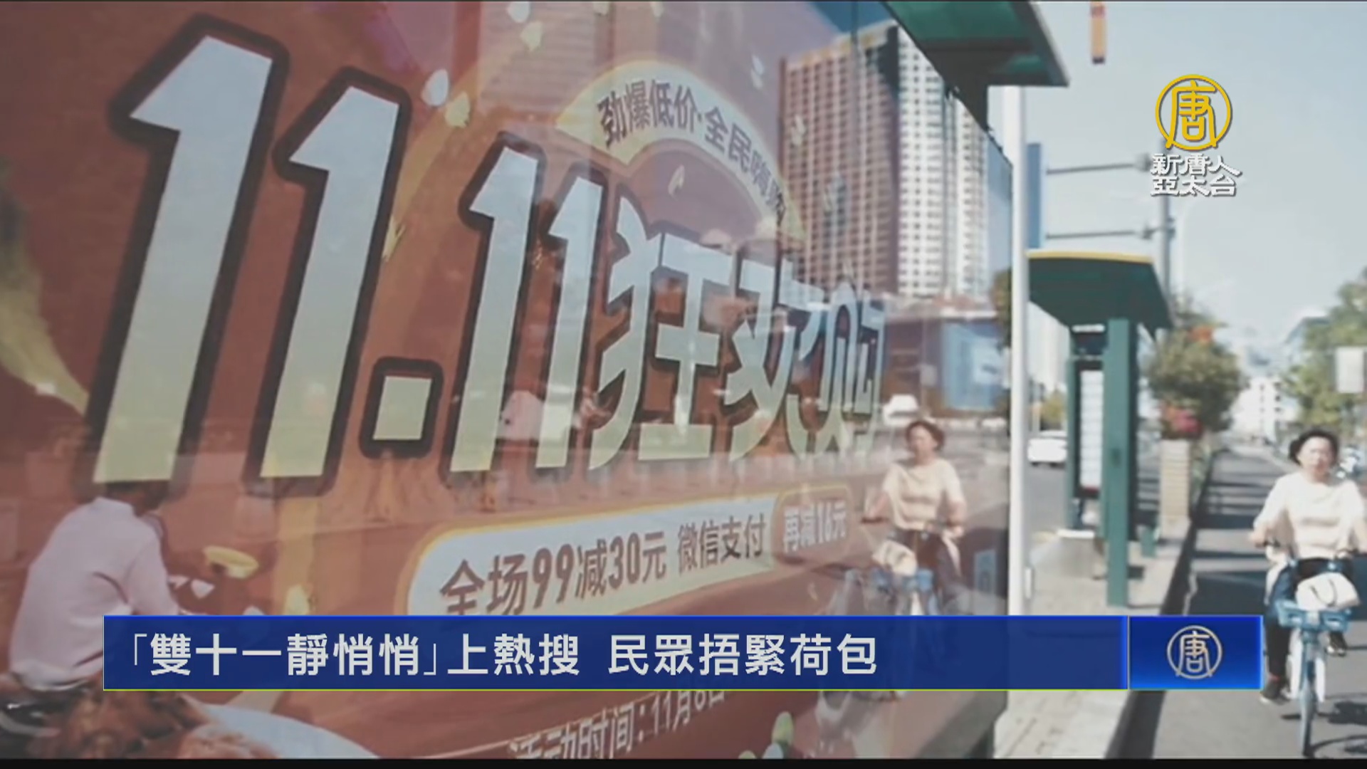2023-11-13 19:31:27在中國經濟低迷不振下,「今年雙11變『靜悄悄』」成了中國網友熱搜話題。外界關注,中國經濟已經進入漫長的冬天,民眾更通過「躺平」來表達對中共當局的不滿。