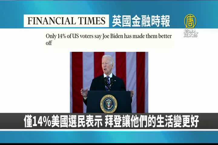 【新唐人亞太台 2023 年 11 月 14 日訊】接著是英國金融時報的報導:僅有14%的美國選民表示,拜登讓他們的生活變得更好。