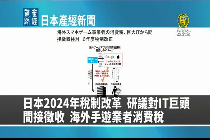 【新唐人亞太台 2023 年 11 月 14 日訊】來看到日本產經新聞報導:日本2024年稅制改革,研議對IT巨頭間接徵收海外手遊業者消費稅。