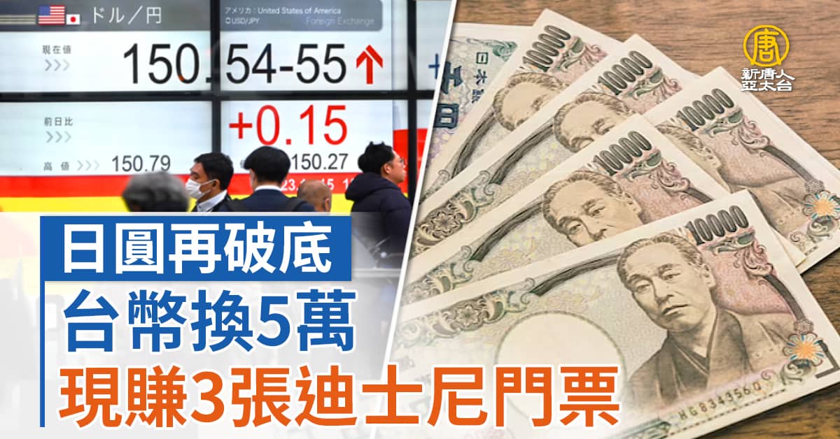 【新唐人亞太台 2023 年 11 月 14 日訊】美元兌日元周一 (13 日) 攀升至一年多高點,逼近 152 日元的關鍵價位,市場揣測當日元逼近2022年低點151.95時,日本當局可能會出手干預。由於新台幣兌美元今天14日早盤持續升值,也使得日元兌新台幣換匯價再探低,台灣銀行日元現鈔賣出價一度來到0.2164元。如果跟今年初高點 0.2405 元相比,換匯新台幣 5 萬元,相當於免費獲得 2 大 1 小的迪士尼門票,讓民眾赴日旅遊相當有感。
