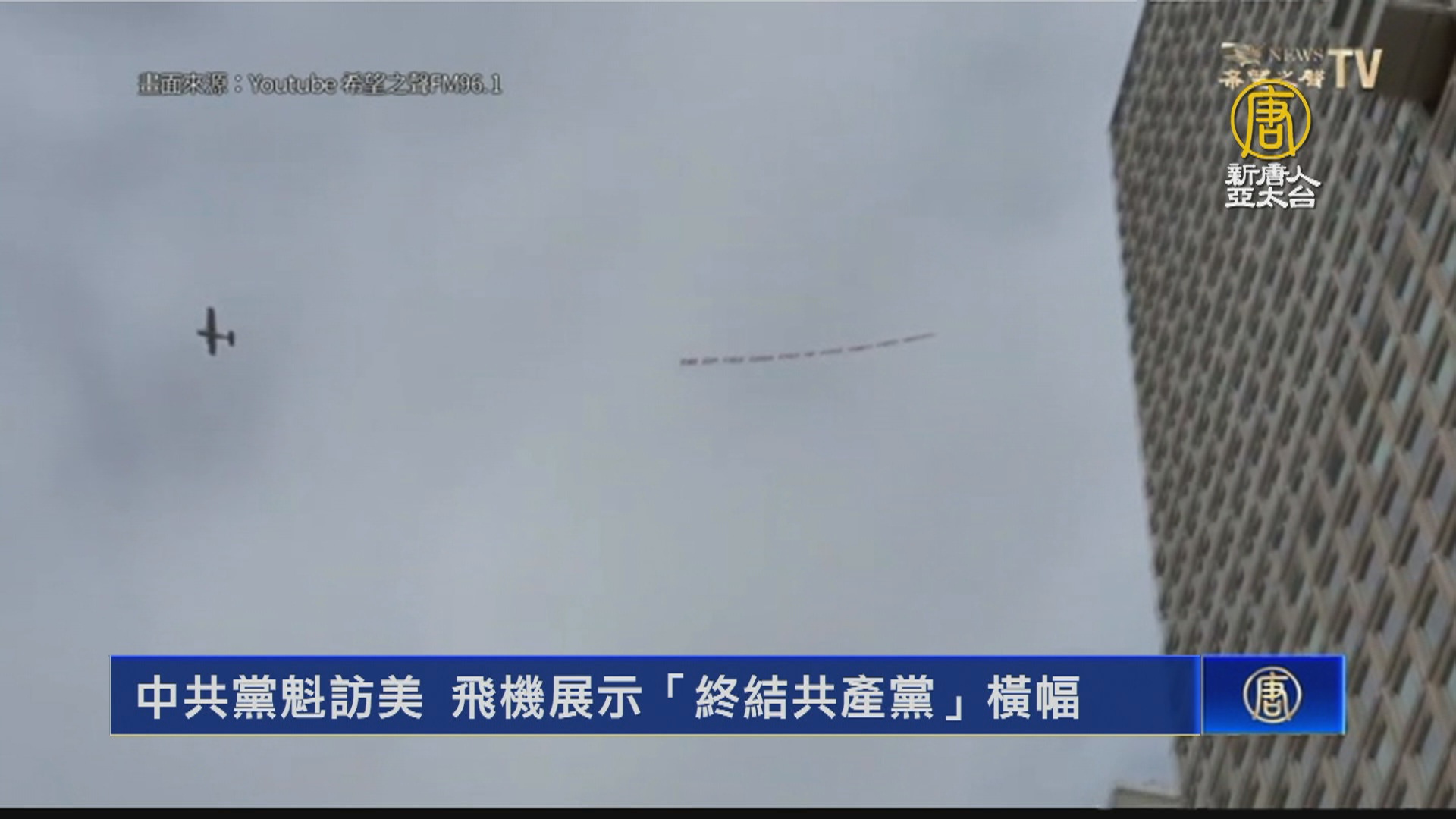 中共黨魁赴美 飛機展示「終結共產黨」橫幅