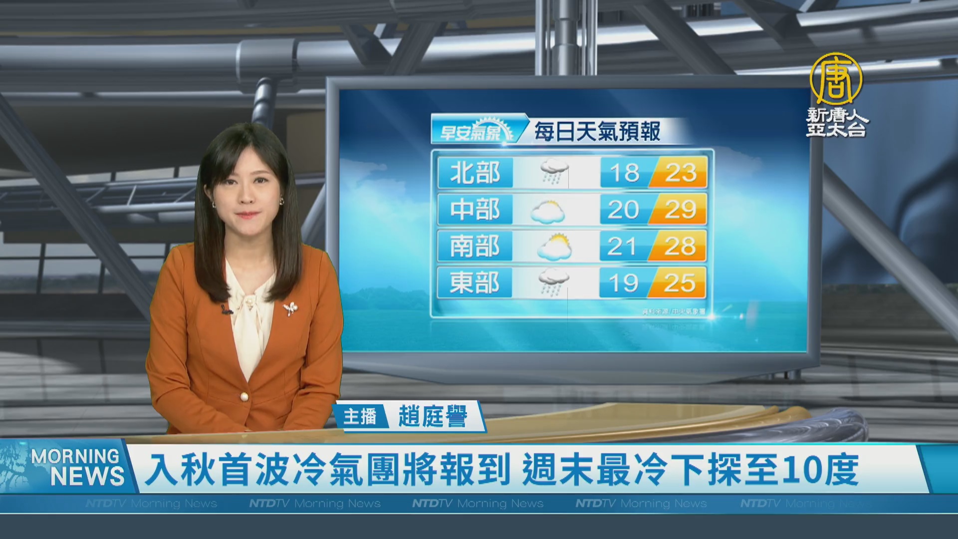 【新唐人亞太台 2023 年 11 月 16 日訊】歡迎您收看11月16日的早安新唐人,我是趙庭譽,先來帶您關心天氣。今天鋒面通過,上半天會先帶來降雨,北部、東北部高溫還有20度至24度,中南部白天高溫則有28度、29度,另外,今年入秋以來首波冷氣團將報到,週六至下週日清晨是最冷的時候,中部以北與東北部低溫會來到12度、13度,沿海空曠地區還會下探10度。提醒觀眾朋友留意。帶您一起來看到國際媒體重要訊息。