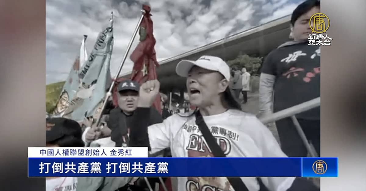 中國人權聯盟創始人 金秀紅:「那些被共匪雇來的,沒有良心,昧著良心說話,為共匪吹喇叭的,抬轎子的都在這裡,我們在喊『打倒共產黨, End the CCP』的時候,他們就用大喇叭來揮在我們前邊,旗子揮在我們前邊,大喇叭朝著我們的耳朵亂叫,然後我想照他們的相,他們就到處躲藏,可見他們是做著虧心事。我們這裡有很多的人,從外地回來,有從紐約來的,西雅圖來的,還有洛杉磯,還有拉斯維加斯,舊金山等等各個地方飛來,到這裡我們要表示一個共同的心聲『打倒共產黨!打倒共產黨!打倒共產黨!打倒共產黨!』」