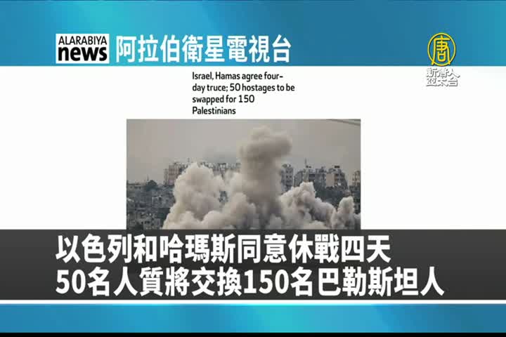 【新唐人亞太台 2023 年 11 月 23 日訊】來看到阿拉伯衛星電視台報導:以色列和哈瑪斯同意休戰四天,50名人質將交換150名巴勒斯坦人。
