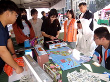 國企、企管、資管、金融四系聯合成果展由活力四射的女舞者表演揭開序幕,成果展規劃每系有四個攤位,呈現教學成果亮點。國企系以「國際商展: 綠能智慧」、「國際商展: 果嚼」、「創意教學:雷雕世界」、「創意教學:國際貿易ABC」讓學生身歷其境學習語言。