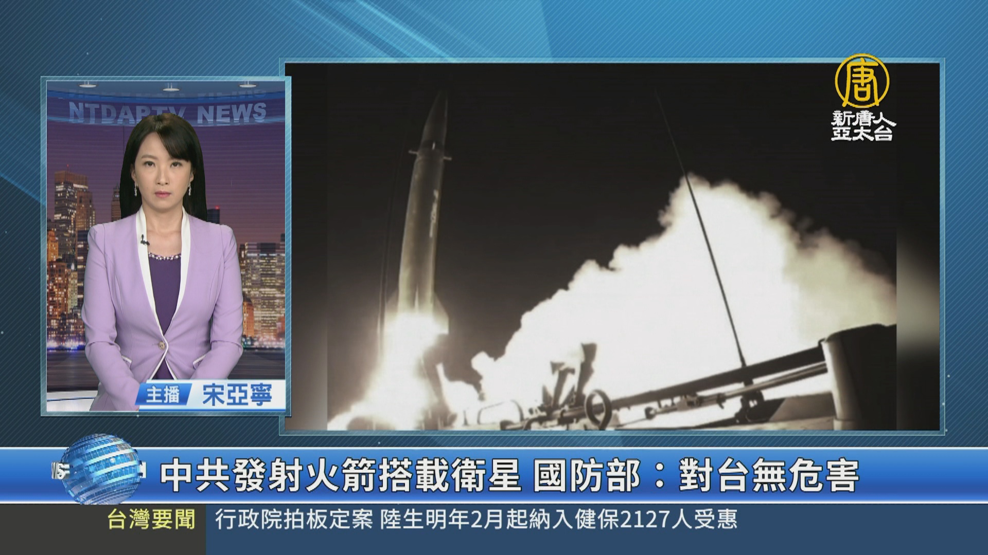 【新唐人亞太台 2023 年 11 月 23 日訊】中華民國國防部表示,剛剛傍晚6點左右,中共在四川西昌衛星發射中心,執行衛星發射任務。該火箭飛行路徑朝南海方向,而且高度位於大氣層外,對台灣地區並沒有危害。國軍運用聯合情監偵系統,周密掌握相關彈道動態、軌跡等資訊,適切警戒與應處。