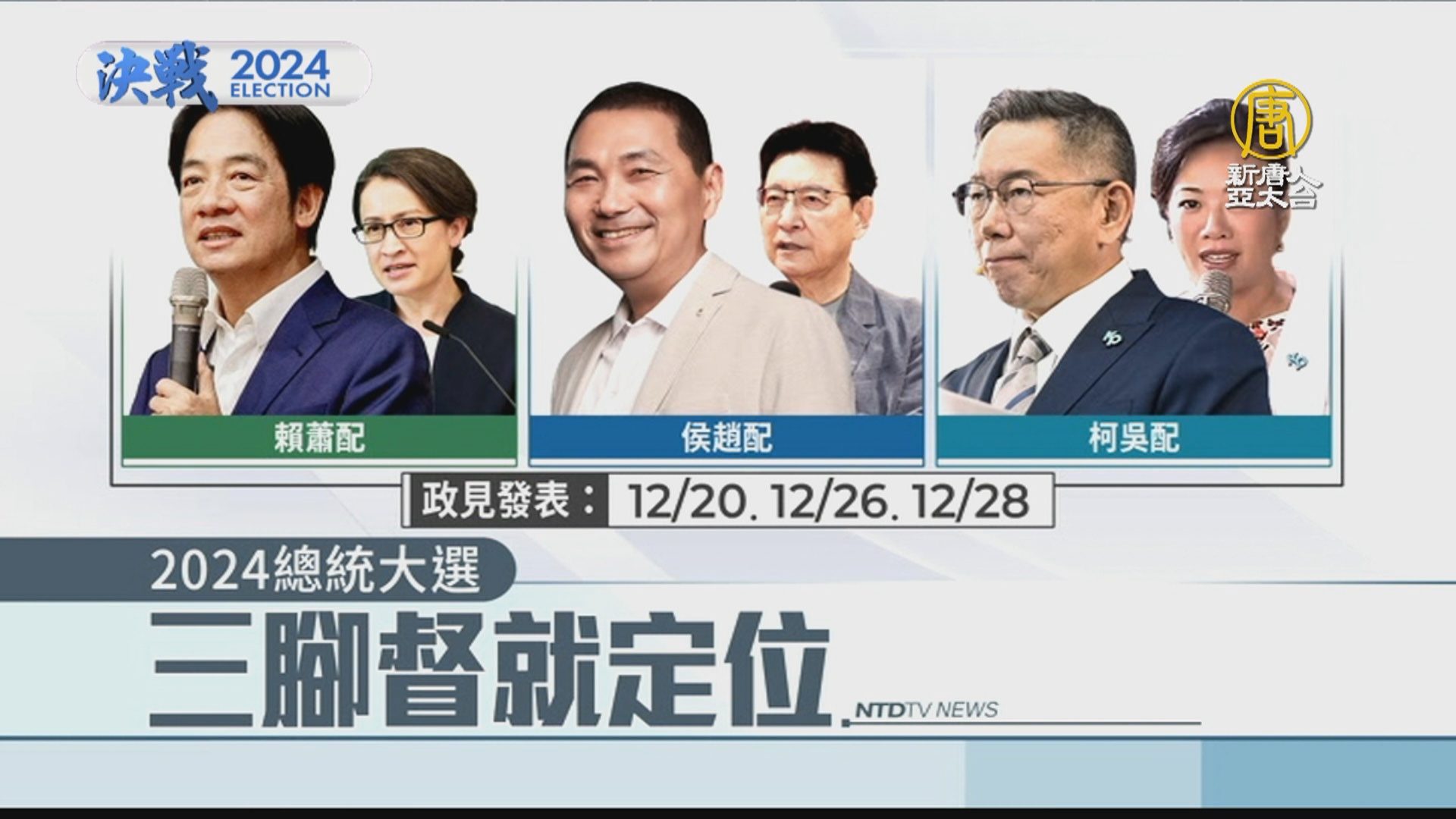 【新唐人亞太台 2023 年 11 月 24 日訊】台灣2024總統大選今天進入倒數第50天,國際媒體高度關注,今天是登記截止最後一天,競選組合終於出爐,民進黨由副總統賴清德、前駐美代表蕭美琴搭檔參選;國民黨則是由新北市長侯友宜聯手媒體人趙少康;民眾黨則是由黨主席柯文哲搭檔同黨立委吳欣盈。