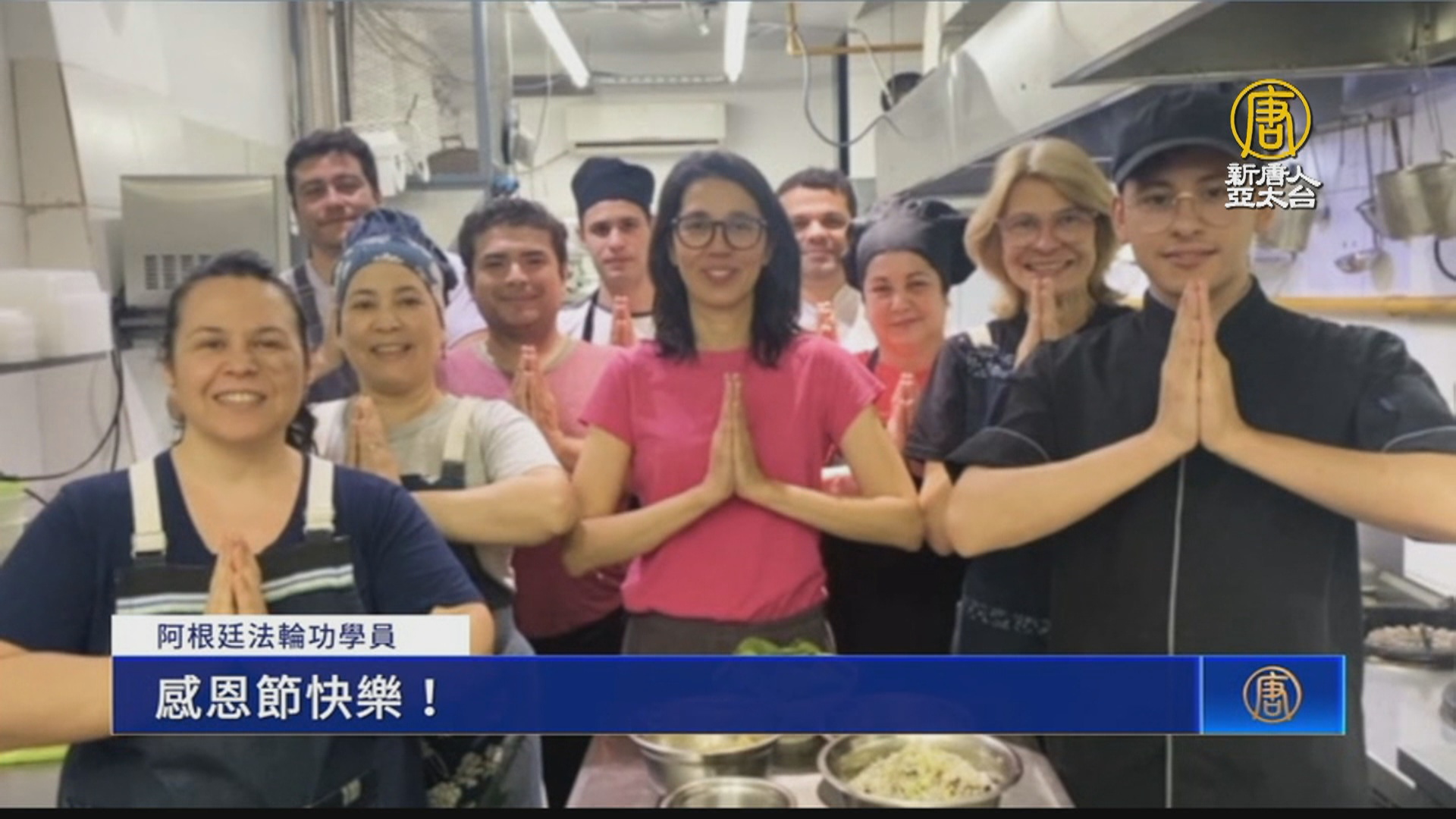 阿根廷法輪功學員:「我們是阿根廷寶廚餐廳的大法弟子,謝謝師父!感恩節快樂!」