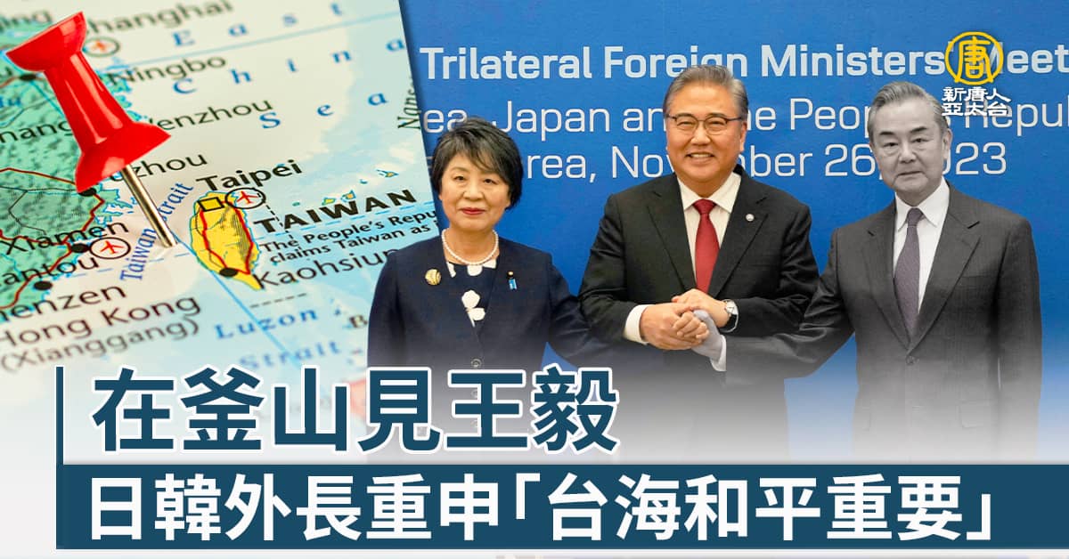 【新唐人亞太台 2023 年 11 月 27 日訊】星期天,南韓與日本外長,在韓國釜山與中共外長舉行會談,日韓外長都重申台海和平穩定的重要性,反對以武力改變台海現況;中華民國外交部對此表示誠摯歡迎與感謝。