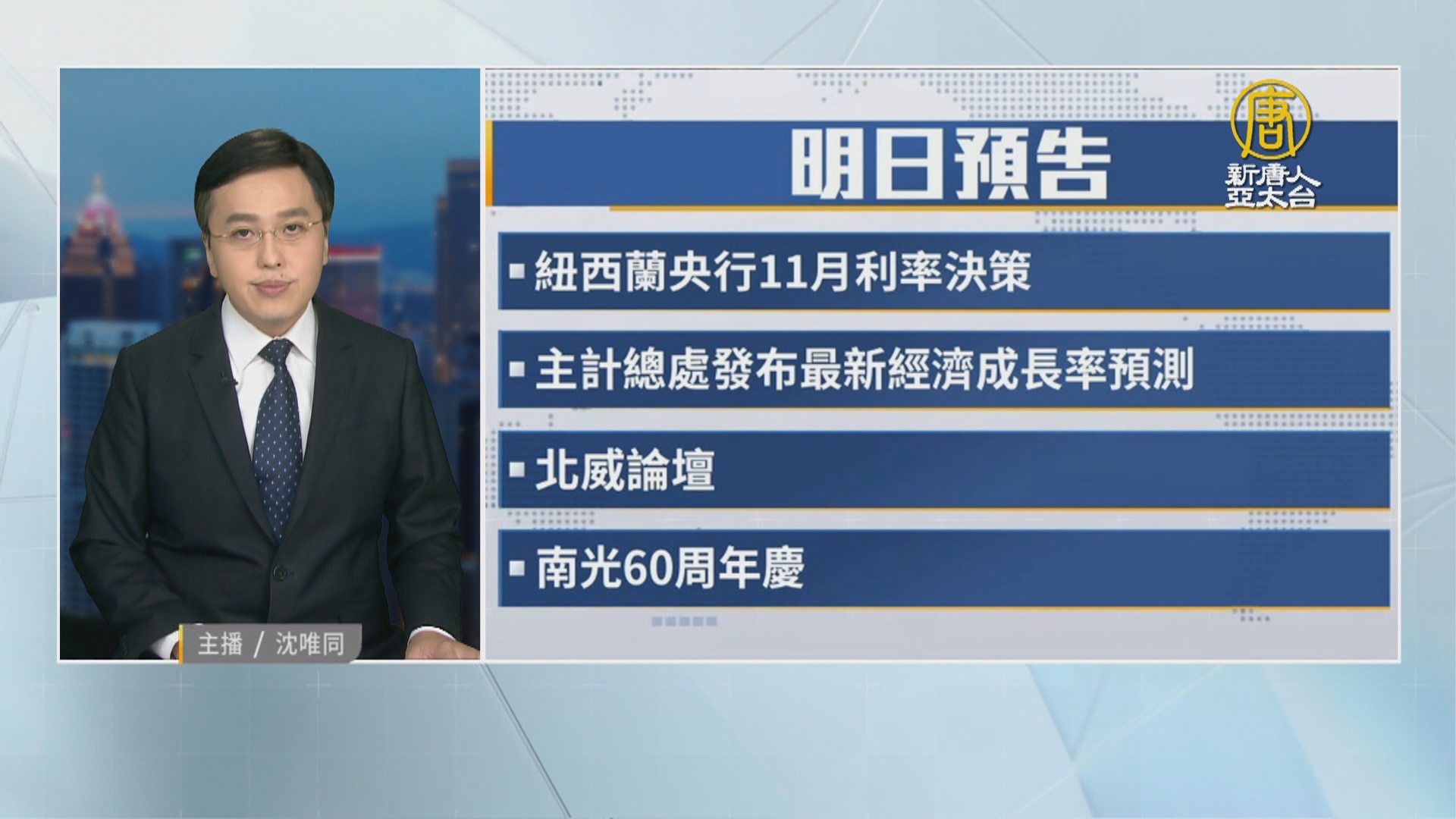 【新唐人亞太台 2023 年 11 月 27 日訊】帶您看到明天,11月28日,星期二,有哪些重要的財經活動。紐西蘭央行公布11月利率決策。台灣主計總處發布最新經濟成長率預測。北威論壇登場。南光60周年慶。