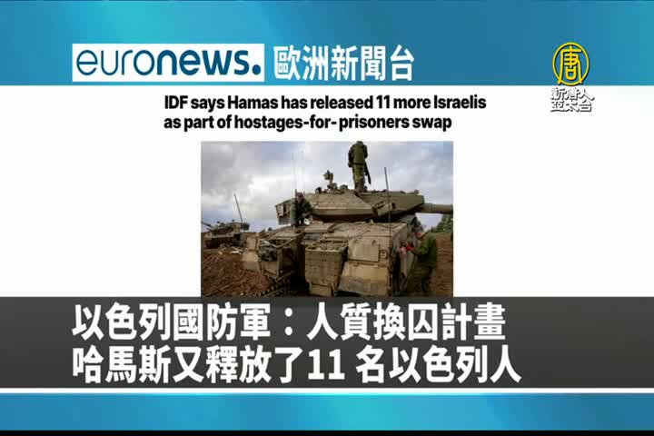【新唐人亞太台 2023 年 11 月 28 日訊】來看到歐洲新聞台報導:以色列國防軍指出:因為人質換囚計畫,哈馬斯又釋放了11 名以色列人。