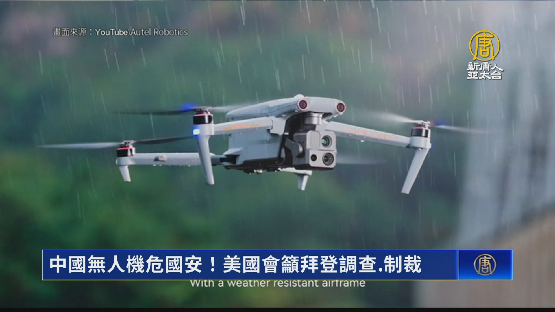 【新唐人亞太台 2023 年 12 月 01 日訊】來看到,中國無人機製造商Autel Robotics被美國議員質疑有國安疑慮。美國兩黨11位眾議員組成的議會團體指出,這一家中企與共軍有關聯,而美國地方執法單位、州與地方政府,正購買與使用這一家中企的無人機,可能暴露全美敏感數據。眾議員們要求拜登政府調查並可能進行制裁。而早在2020年,中國無人機製造商大疆被美國商務部指出參與壓迫維吾爾族,因此列入貿易黑名單。