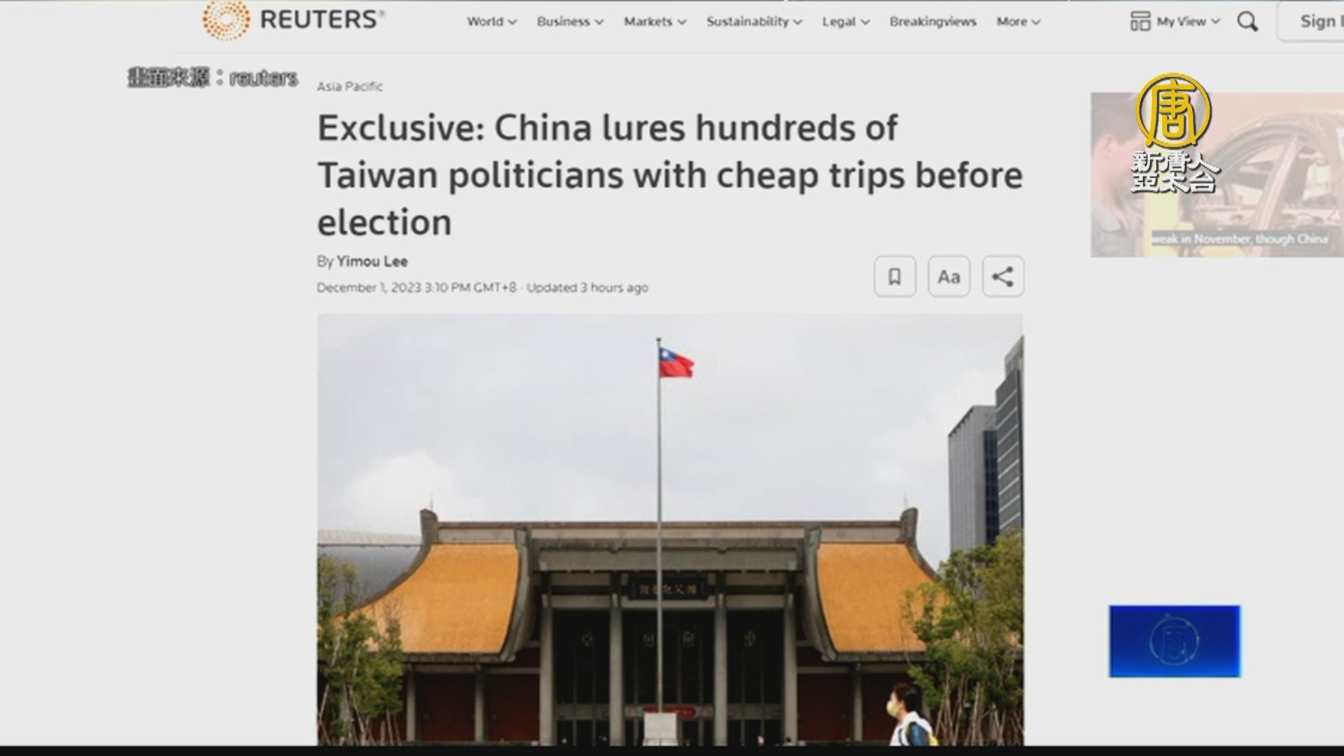 【新唐人亞太台 2023 年 12 月 01 日訊】台灣明年1月舉行總統大選,但中共介選動作頻頻,連外媒也相當關切。路透社1日引述台灣消息人士報導,在台灣大選前,北京資助數百名台灣政治人物,以低廉的價格到中國旅遊,試圖引導台灣民眾,支持與中共關係好的政治人物,以此企圖干預選舉。一名調查中國活動的台灣安全官員透露,過去一個月,台灣安全機構就已調查400多件對中國旅遊,其中大多數是由當地里長和村長促成。而對於有里長組團赴中接受招待而觸法,法務部長蔡清祥呼籲民眾提高警惕,務必守法。