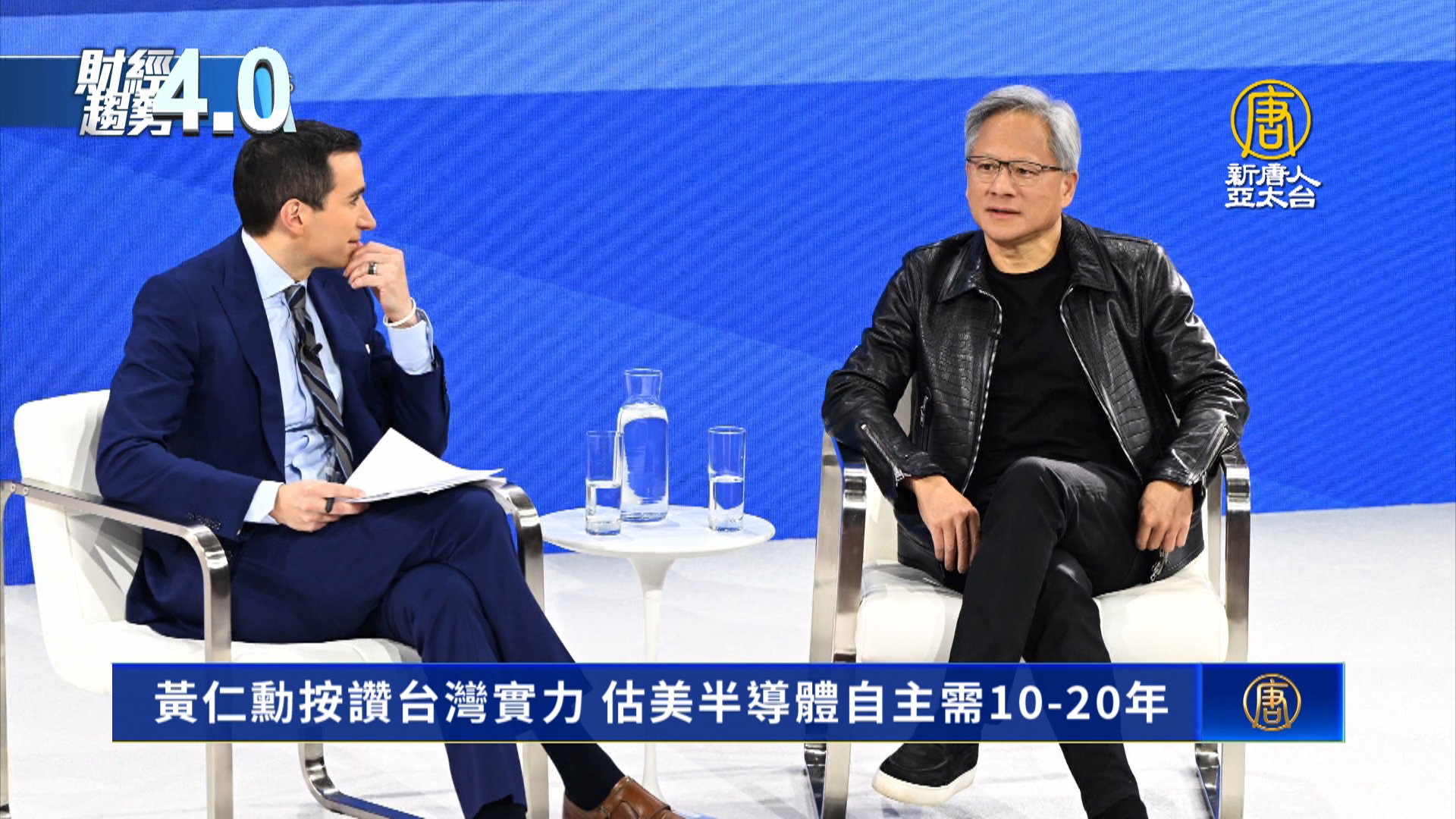 【新唐人亞太台 2023 年 12 月 02 日訊】再來看到,全球AI指標廠商輝達執行長黃仁勳,本周三在《紐約時報 》DealBook峰會上,大談AI產業趨勢,另外他說,美國晶片供應鏈,如果要打破依賴的局面,可能還要花上 10-20年。