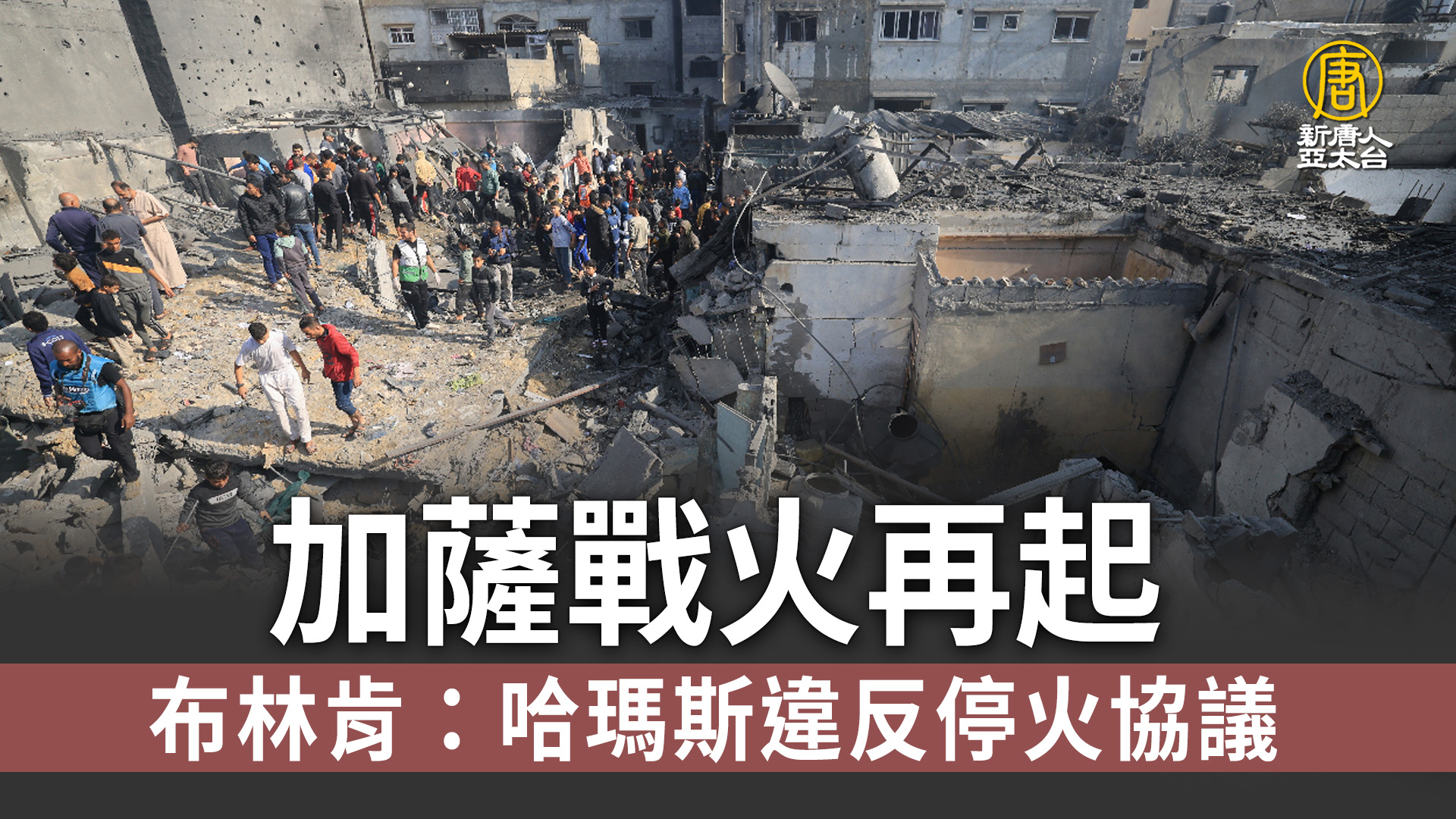 【新唐人亞太台 2023 年 12 月 02 日訊】以哈雙方休戰七天之後,加薩走廊再掀戰火。聯合國官員表示,重啟戰爭讓加薩地區成為人間煉獄,呼籲各界發揮影響力促成雙方停火。美國國務卿布林肯指出,哈瑪斯違反停火協議導致雙方再度掀起戰火,他將會持續努力推動「持久和安全」的和平。