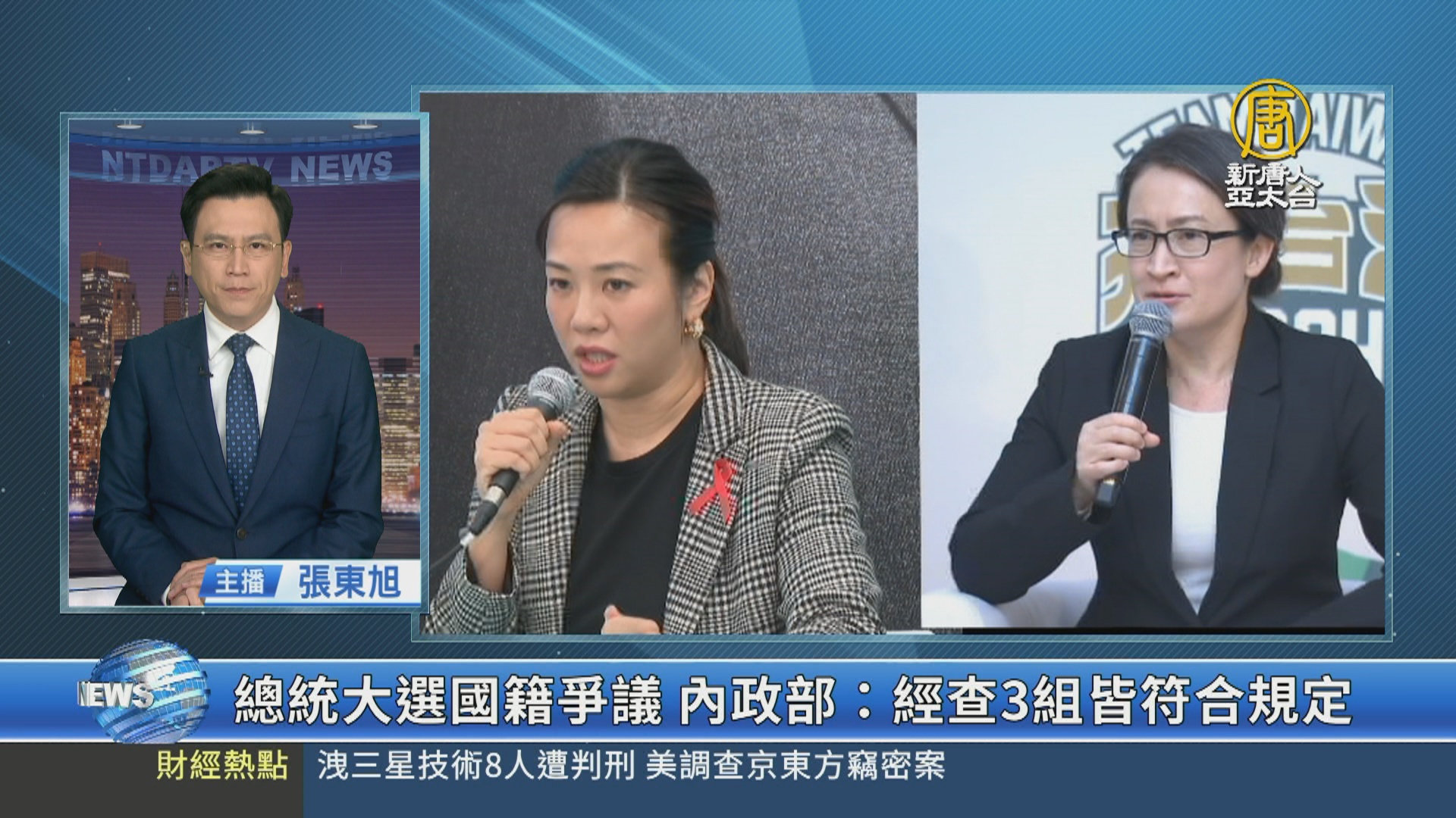 【新唐人亞太台 2023 年 12 月 04 日訊】好,總統大選將近,近期民進黨副總統參選人蕭美琴,以及民眾黨副總統參選人吳欣盈,兩人國籍是否符合選舉規定,都受到關注。對此內政部表示,3組正副總統參選人的資格,經查後都符合內政部執掌的相關規定,中選會將依程序,對6名候選人進行資格審議,待審議完竣後,會立即對外說明。