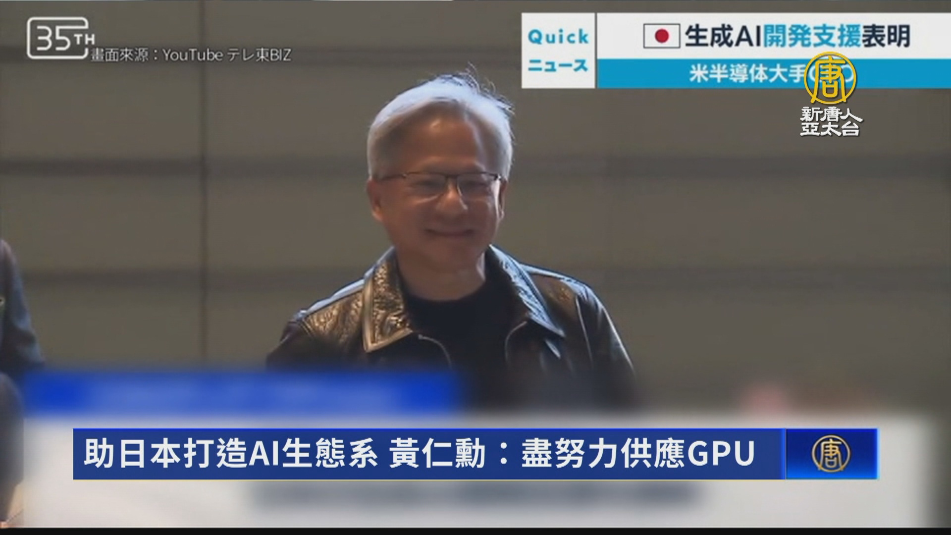 【新唐人亞太台 2023 年 12 月 05 日訊】日本正積極重拾半導體產業競爭力,加速AI晶片研發。美國晶片大廠輝達執行長黃仁勳周一會見日本首相岸田文雄,當面承諾將盡可能優先供應GPU給日本市場,同時將在日本設立AI研究實驗室,並投資日本新創公司。